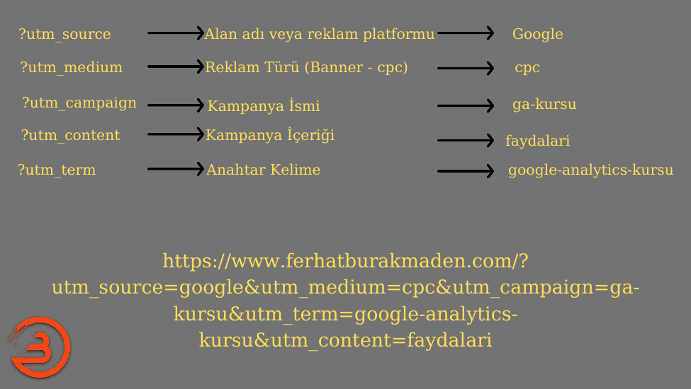 ?utm_medium : Bu her zaman bir Reklam türüdür. Afiş reklamı yapıyorsak “banner” yazılabilir yada google’da reklam veriyorsak sıklıkla kullanılan “cpc” yazabiliriz.